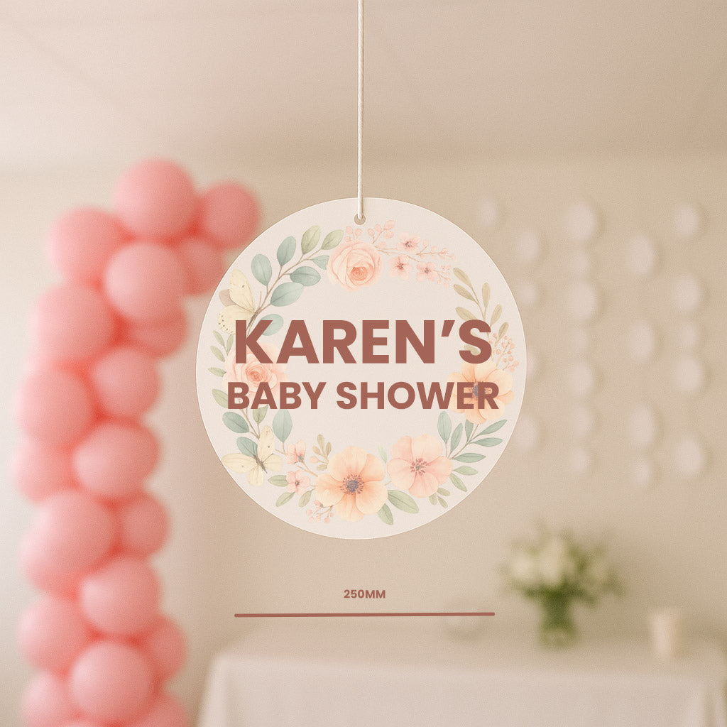 Personalised Floral Baby Shower Sign – Custom 250mm Foamex Hanging Décor | GetPersonalised.ie