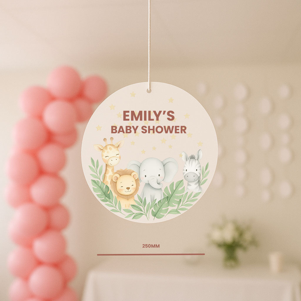Personalised Zoo Theme Baby Shower Sign – Custom 250mm Foamex Hanging Décor | GetPersonalised.ie