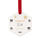 Personalised Baby’s First Christmas Hexagon Ornament – Custom Name & Year (Ceramic 3”)
