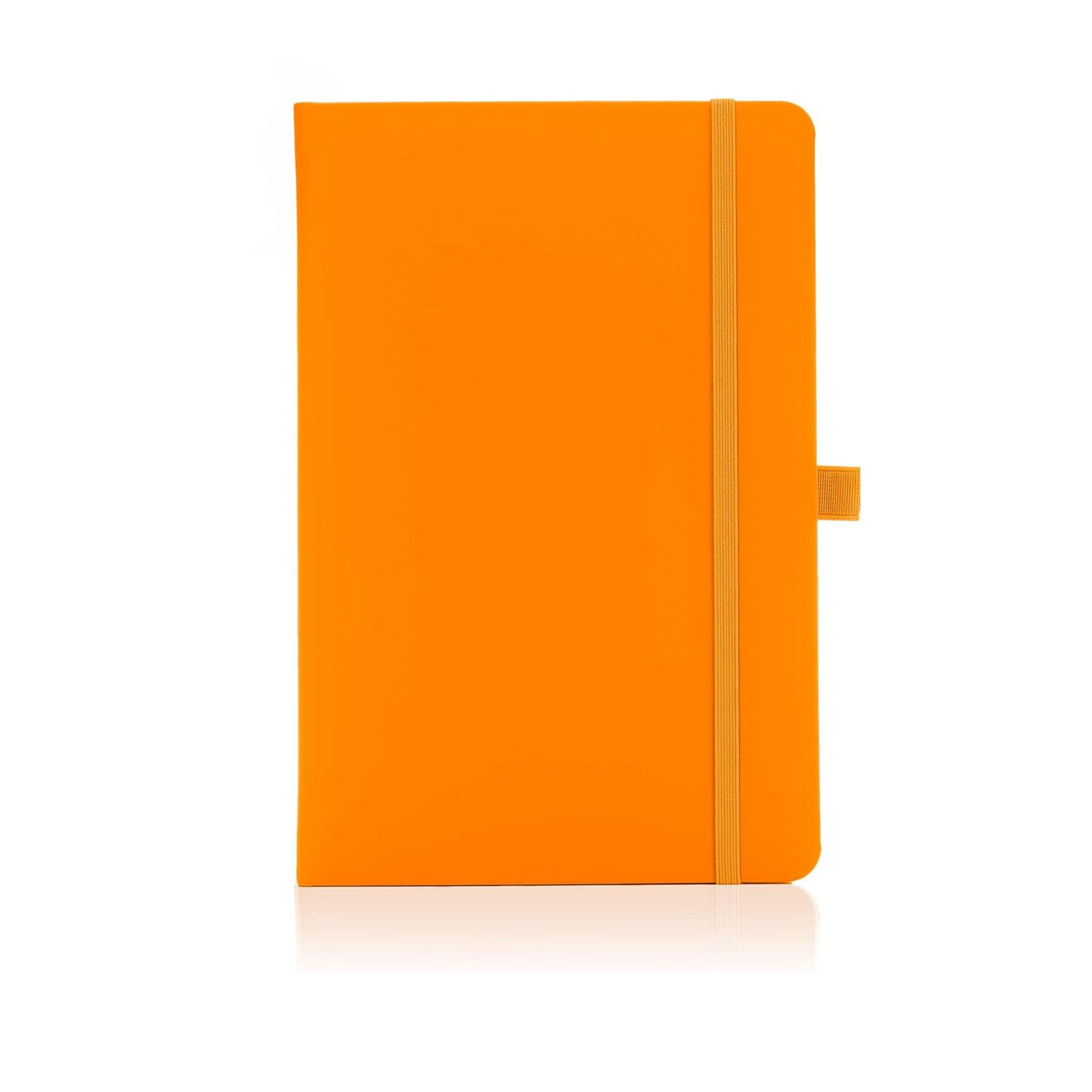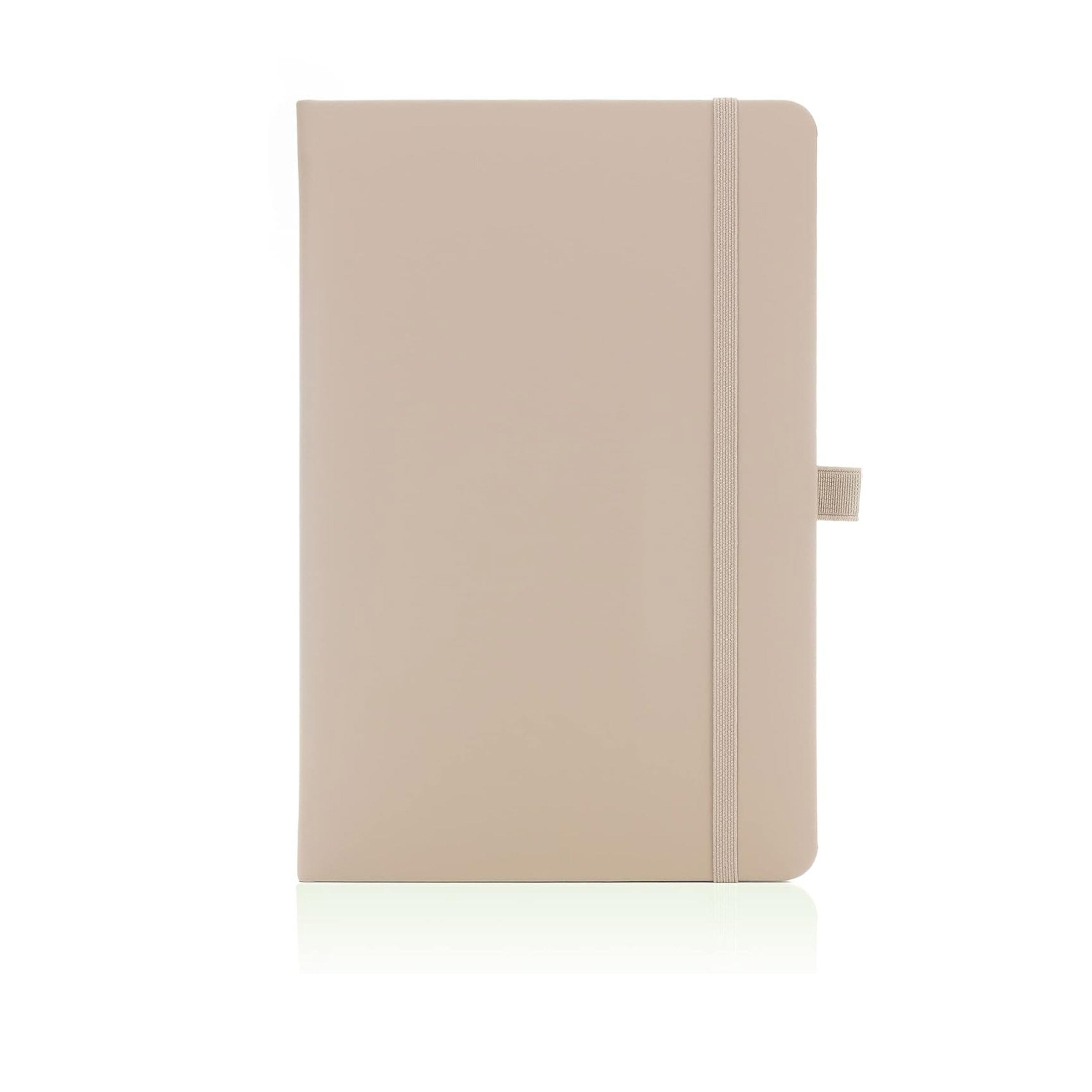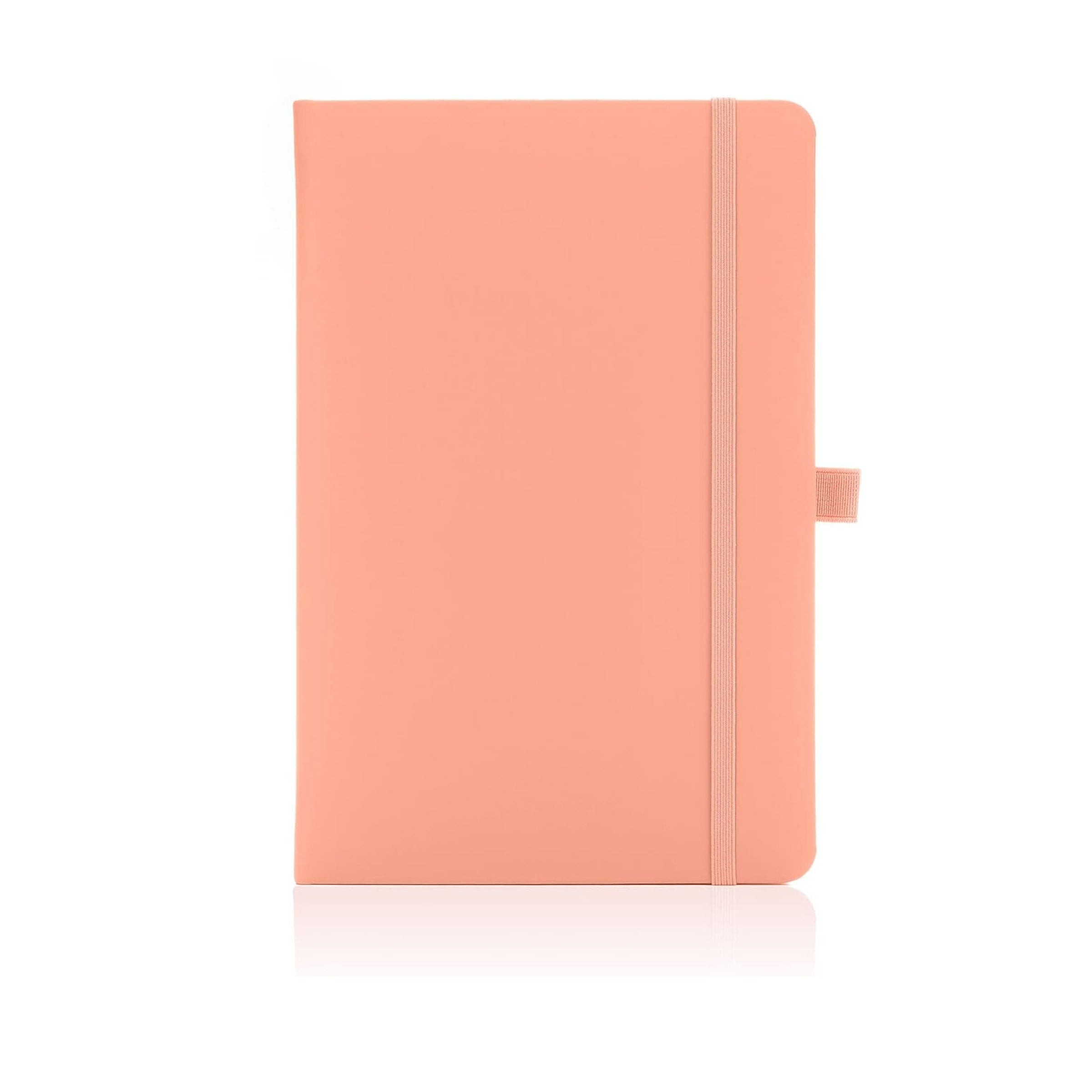 These notebooks feature a luxurious soft-touch cover available in a range of vibrant colors, lay-flat stitching binding for ease of use, and no-bleed 80gsm smooth paper. With 192 lined cream-colored pages (5.7" x 3.), rounded corners, a bookmark ribbon, and an elastic closure, they're built for organized, everyday use. The hidden pocket inside the back cover is ideal for storing notes, receipts, or business cards, keeping everything tidy and your brand front and center.